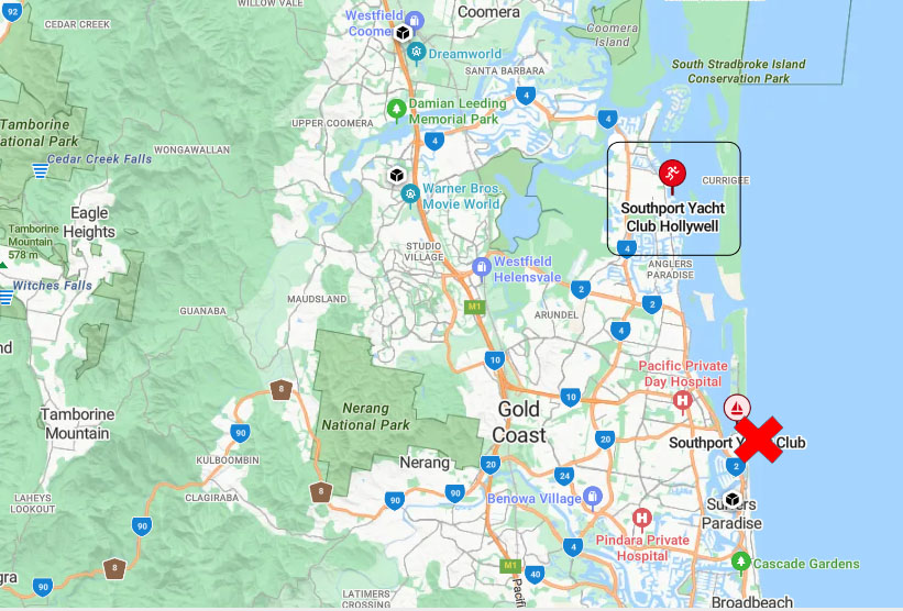 The regatta will take place at Southport Yacht Club’s Hollywell campus – NOT the one near Main Beach – see map.